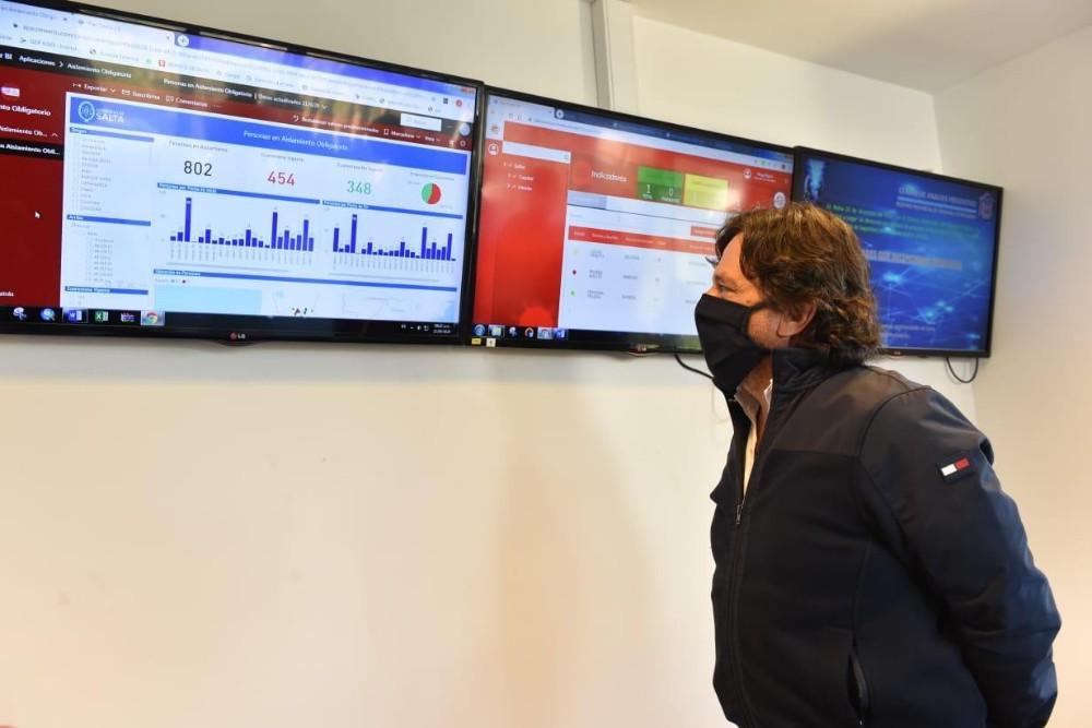 El gobernador Gustavo Sáenz visitó el Centro de Coordinación Operativa y se interiorizó sobre el funcionamiento de una nueva aplicación destinada al monitoreo de personas que se encuentran realizando el aislamiento social, tras haber ingresado a la provincia. A su vez el sistema permitirá la realización de autotest de coronavirus.