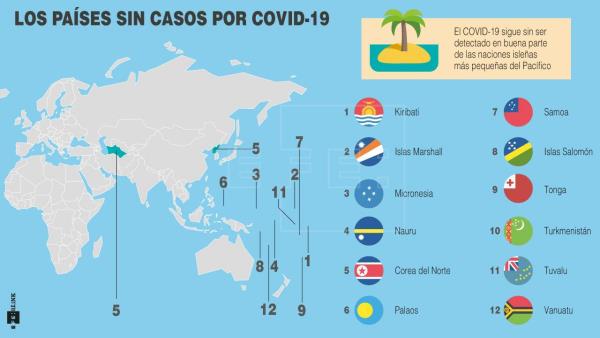 Según un reporte revelado por el organismo de salud de la Organización de Naciones Unidas (ONU), 12 de los 14 países libres de coronavirus corresponden a islas o islotes a miles de kilómetros de la costa que implementaron de entrada políticas muy estrictas y optaron por cerrarse al mundo favorecidos por su posición geográfica.