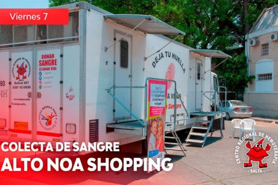 El Centro Regional de Hemoterapia realizará mañana, viernes 7, una nueva jornada para promover la donación habitual y colectar sangre de todo grupo y factor en inmediaciones del centro comercial Alto Noa Shopping de la capital provincial.