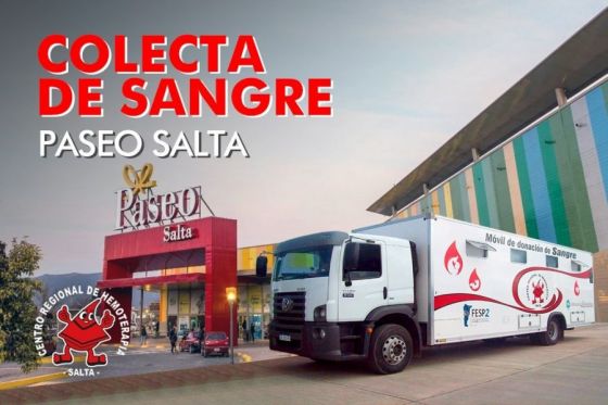 El equipo del Centro Regional de Hemoterapia estará este viernes 14, en el centro comercial Paseo Salta, ubicado en cercanías de la rotonda de Limache donde, en el horario de 10 a 15, colectará sangre de todo grupo y factor.