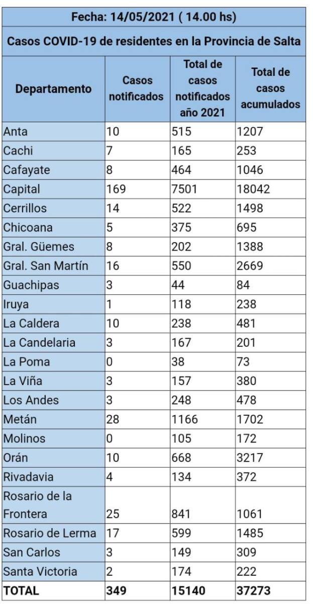 El Ministerio de Salud Pública informó que se notificaron 349 casos nuevos en la provincia, de los cuales 330 corresponden a muestras procesadas por laboratorio y 19 definidos por criterio clínico epidemiológico.