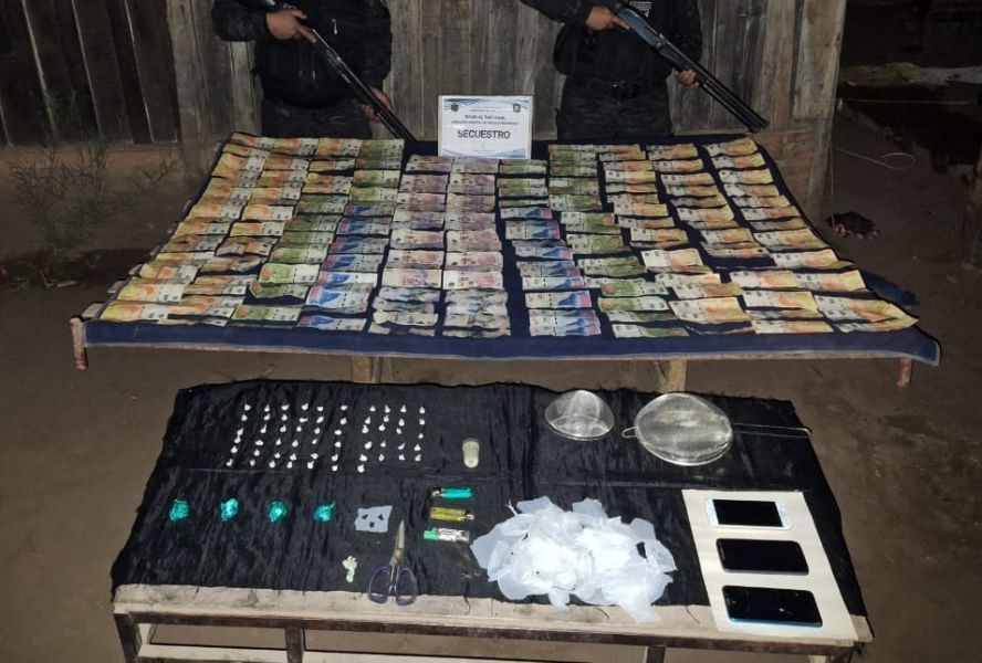 La medida judicial se concretó en las últimas horas de ayer, cuando los investigadores registraron el inmueble en cuestión, donde procedieron a la detención de tres hombres mayores de edad y el secuestro de más de 380 dosis de sustancia en polvo que a las pruebas de campo arrojaron positivo para cocaína, más de 70 mil pesos en efectivo, elementos de fraccionamiento y otros útiles para la causa.