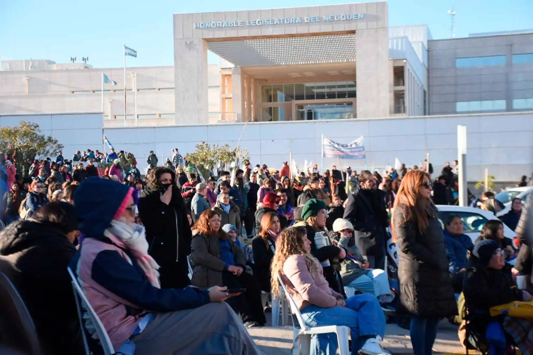 “Desde las puertas de la Legislatura, mientras los diputados dan tratamiento a un proyecto que busca ajustar a la docencia neuquina, nosotros seguimos de pie en defensa de nuestros derechos y de la escuela pública. No resignamos derechos”, agregó Guagliardo en un video que publicó en las redes sociales del gremio.